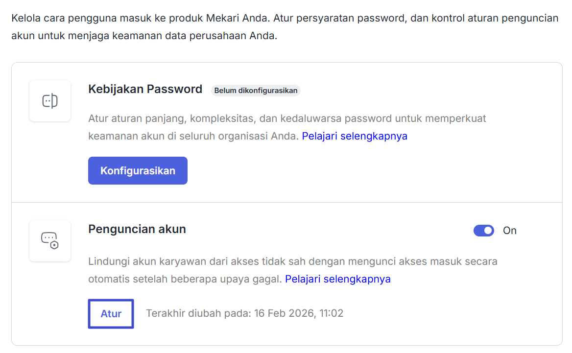Demikian penjelasan mengenai cara mengaktifkan account lockout di Mekari.