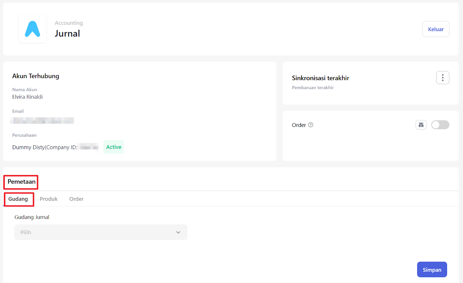 Masuk ke menu Integrasi dan pilih submenu Jurnal.
