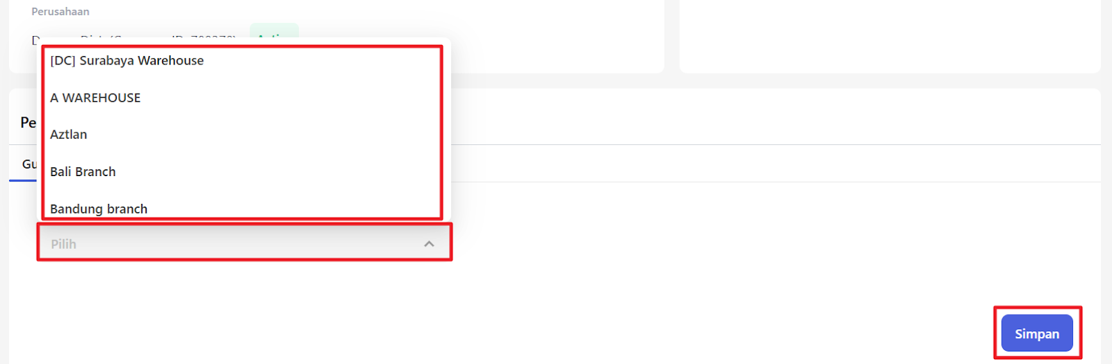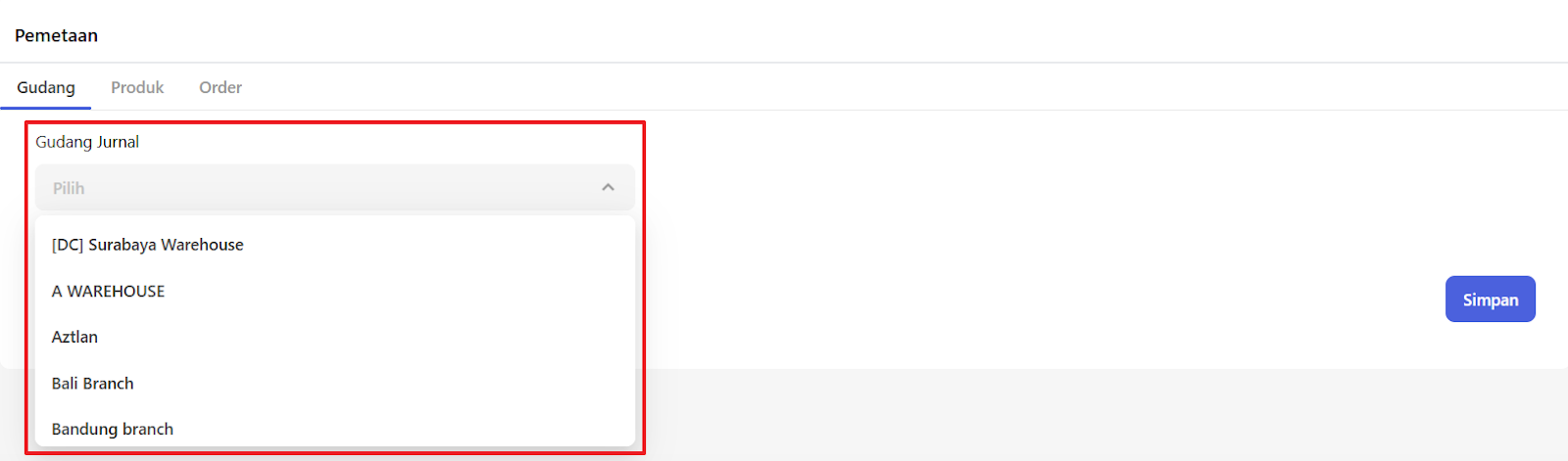 Anda dapat memilih gudang yang ingin dipetakan dengan toko POS tersebut. Klik tombol “Simpan” setelah gudang selesai dipilih.