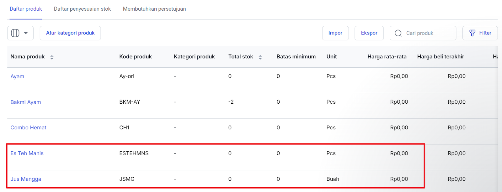Setelah integrasi antara Mekari POS F&B dan Mekari Jurnal berhasil, maka setiap produk yang Anda buat di Mekari POS F&B akan otomatis tersinkronisasi di Mekari Jurnal dengan tipe produk Single dan Pelacakan persediaan Hanya lacak qty.