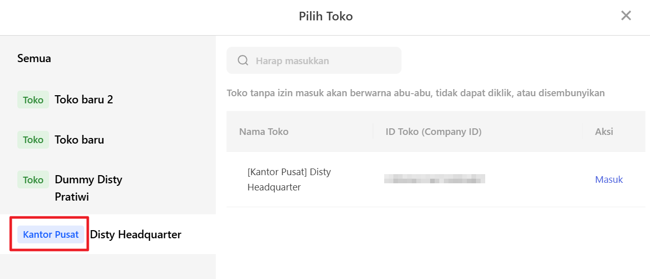 Setelah toko Headquarter sudah aktif di akun Anda, maka terdapat tanda seperti berikut.