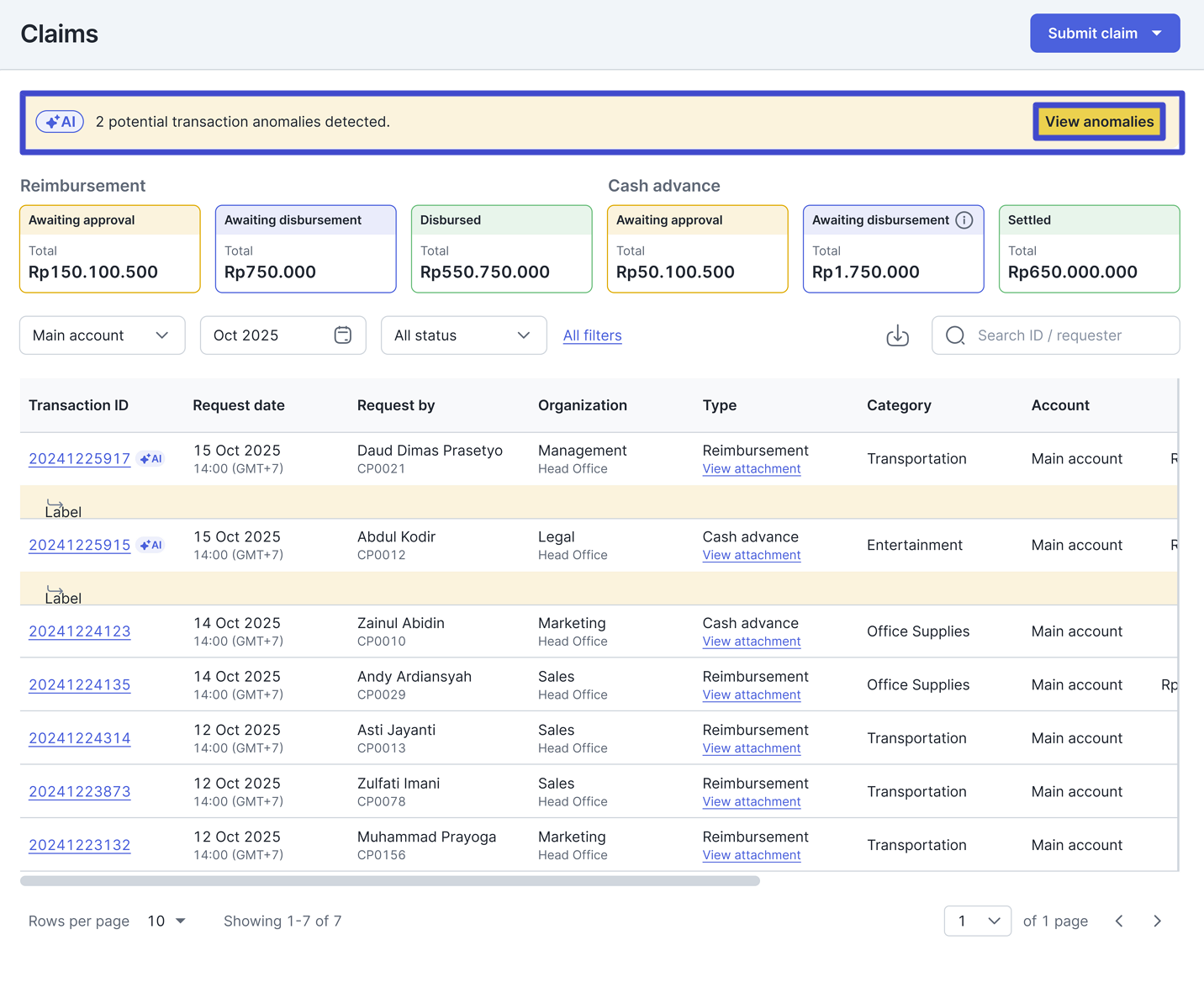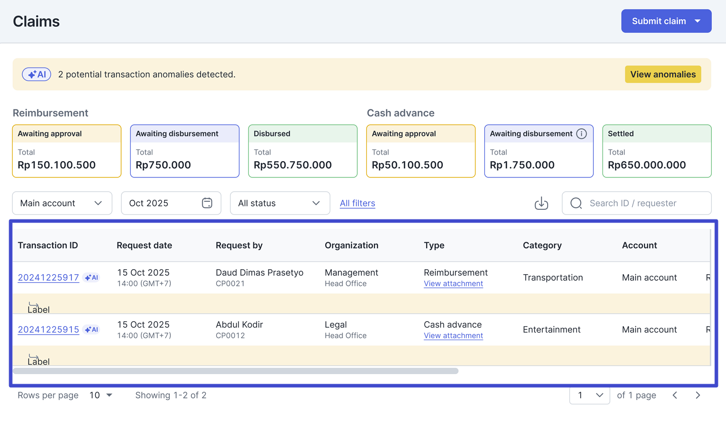 Maka akan muncul notifikasi berikut pada halaman Claims detail yang menandakan bahwa transaksi tersebut ditandai memiliki ‘anomali.