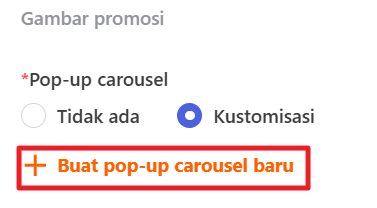 Anda juga dapat memilih Kustomisasi dan klik “+Buat pop-up carousel baru” untuk mengunggah pop-up carousel.