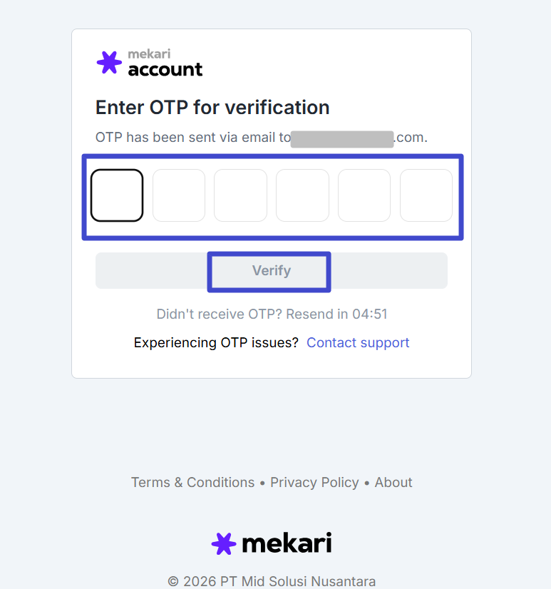 Lalu sistem akan mengirimkan OTP melalui email Anda. Periksa email Anda, lalu salin kode OTP tersebut ke tampilan di bawah ini.