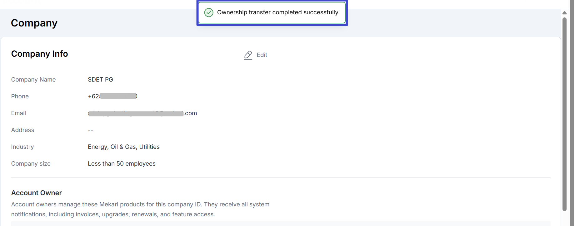 Demikian penjelasan terkait cara melakukan transfer ownership company ke user lain. Pelajari juga terkait cara mengubah info perusahaan di sini.
