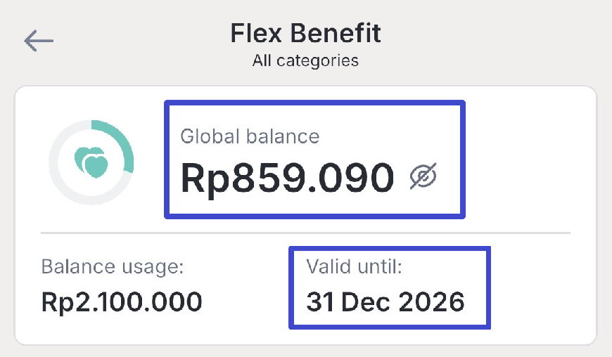 Kemudian, Anda akan melihat total Flex Benefit yang Anda miliki beserta masa berlakunya.