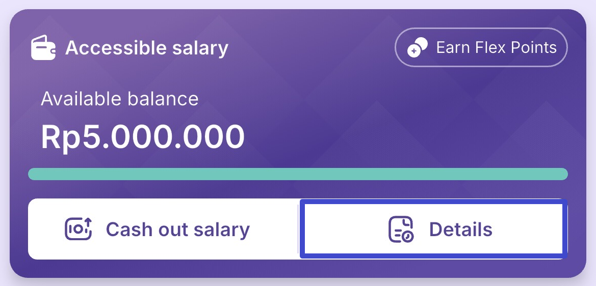 - Jika perusahaan mengaktifkan fitur Accessible Salary, maka Anda sebagai karyawan dapat melihat saldo tersebut dengan klik "Details".
